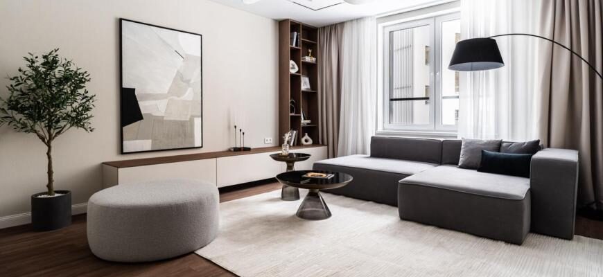 Главная идея стандарта — сочетание качества, практичности и спокойной эстетики. В отделке используются материалы российских и европейских производителей, а дизайн выполнен в нейтральной серо-бежевой гамме, которая легко адаптируется под любой стиль декора. Подобное решение делает квартиру универсальной, а пространство остается актуальным даже при смене интерьерных предпочтений собственника.